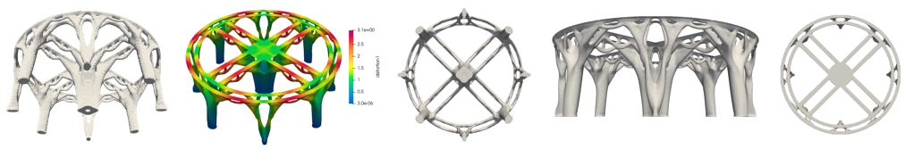 高性能并行计算,驱动大规模拓扑优化!基于 OpenMP 和 PETSc,我们构建了可处理上千万单元网格的高性能求解器,实现大规模、高分辨率的拓扑优化。我们的框架能够生成平滑、可制造的设计结构——从此告别“乐高积木”式的结果!
